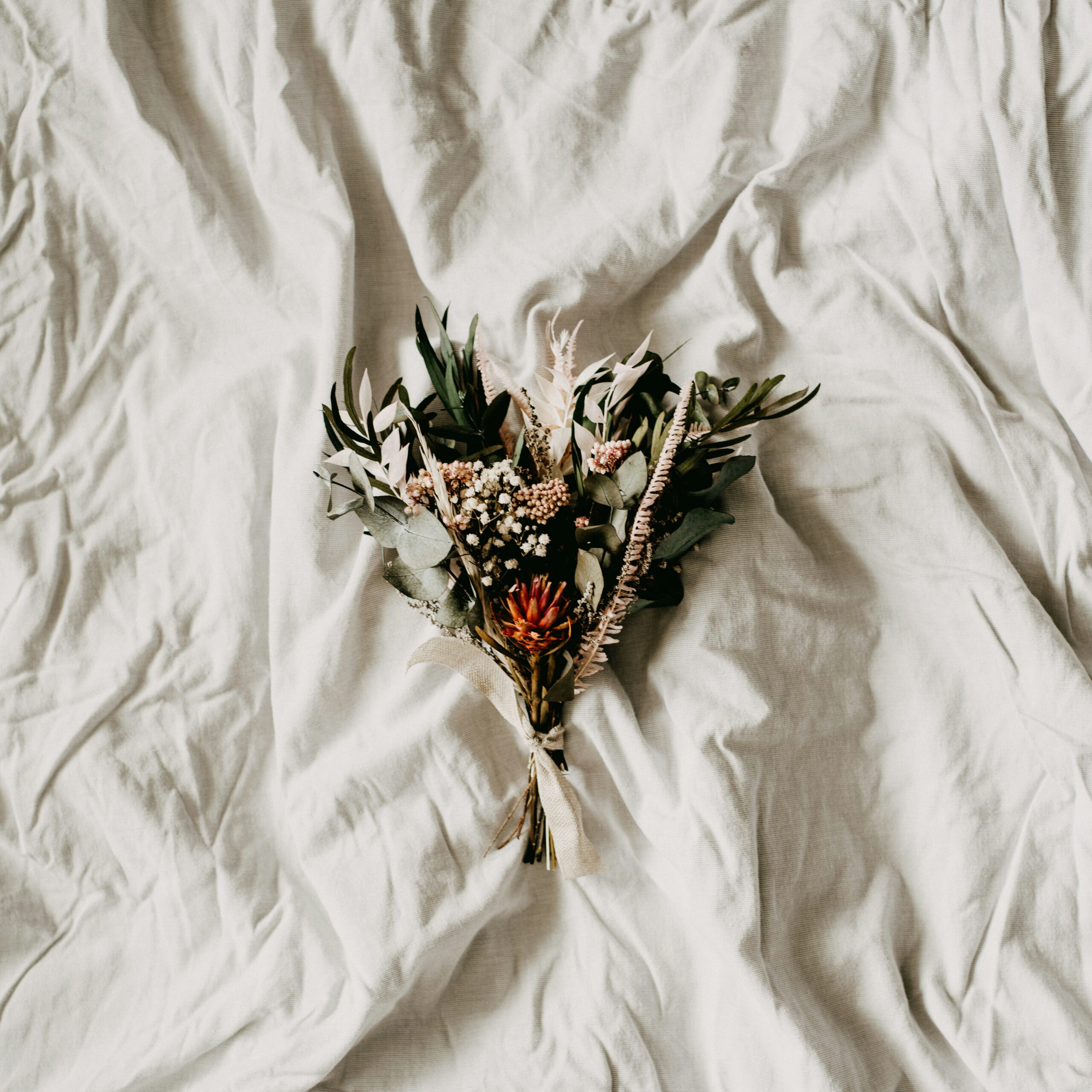 - 香りのアクセント: ユーカリやハーブ類を使って、アレンジメントにほのかな香りを加えると、癒し効果も増します。