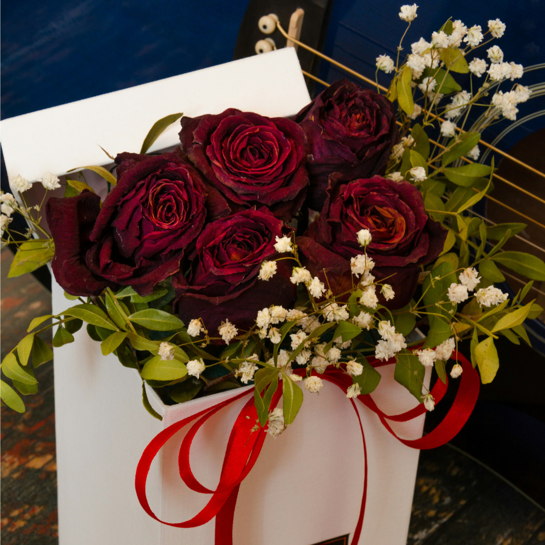 - 特徴: 冬に咲く深紅やボルドーのバラは、気品があり、特別感が漂います。季節に合わせてシックな色合いを選ぶと、温かみのある大人っぽいブーケに仕上がります。