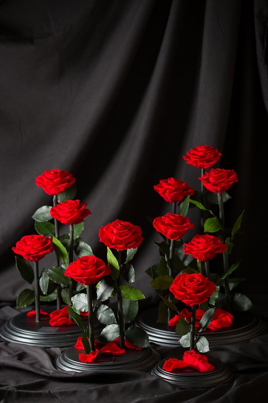 プリザーブドフラワーとは特殊加工を施した生花です。水なしで鮮やかな色とみずみずしさ、美しさを数年にわたり保てるようにしています。誰もが夢見た魔法の花です。