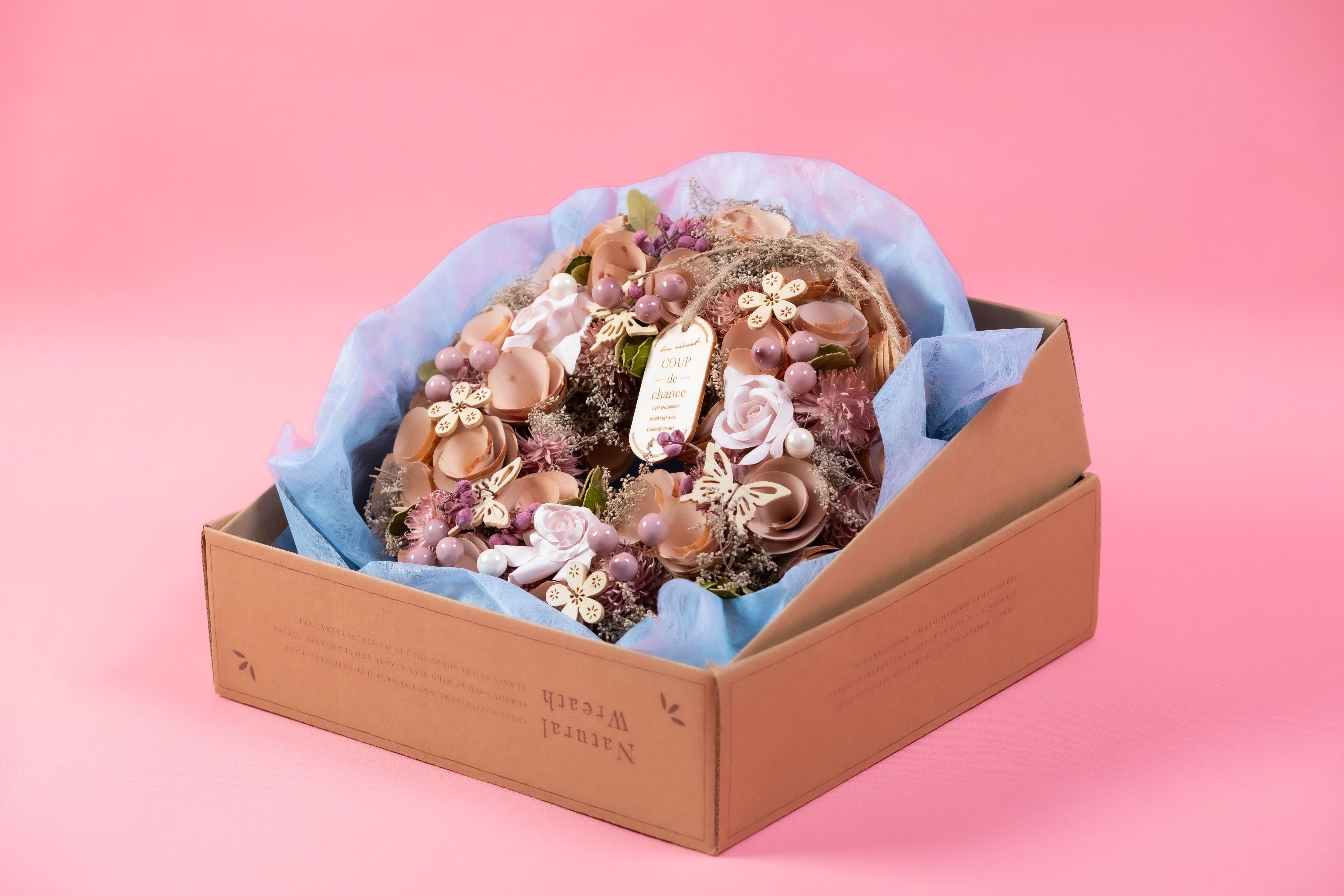 長く飾れるインテリアフラワー。空間を彩る母の日ギフトとしておすすめのナチュラルリースです。