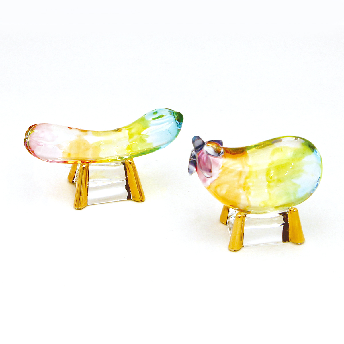淡い彩りをまとったガラスは、光を受けてやさしく虹色に輝き、お盆の空間に静かな華やかさを添えます。精霊馬(しょうりょううま)は、お盆の期間に故人の霊が行き来するための乗り物として飾られる、日本の伝統的な供養のかたち。きゅうりは「馬」に見立てて、あの世から早く帰ってきてほしいという願いを。ナスは「牛」に見立てて、できるだけゆっくりとこの世に滞在してほしいという祈りを込めて飾られます。ガラス製の精霊馬は、生野菜と違って夏場でも傷むことなく、美しい状態のままお供えいただけます。盆棚やリビングの祈りのスペースに、涼やかで特別な一対をぜひお迎えください。アレンジメントは、清らかな色合いが、故人への想いとともに、そっと心を癒します。どんな空間にも調和しやすく、贈る方・受け取る方、どちらにも安心してお選びいただける一品です。
