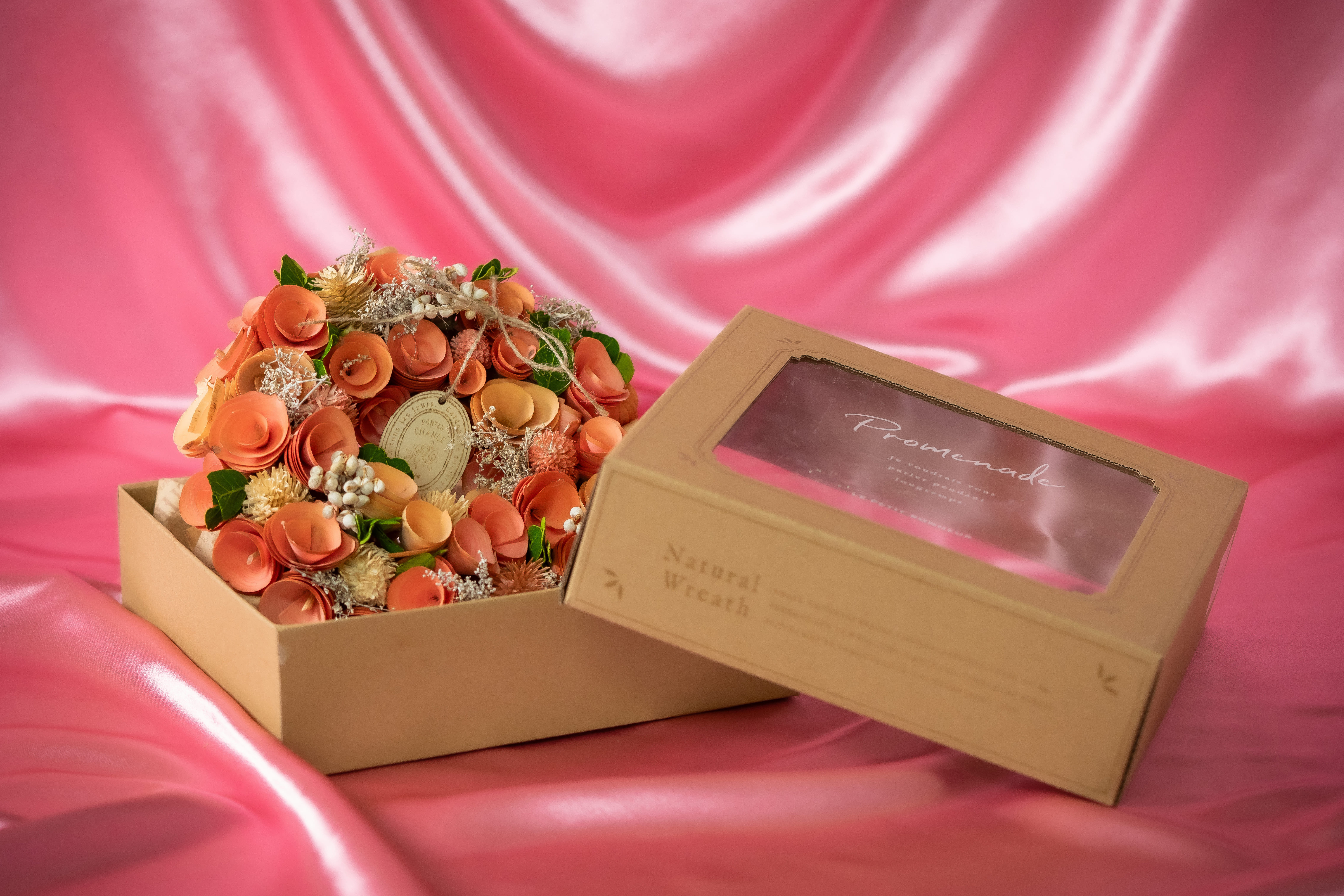 長く飾れるインテリアフラワー。空間を彩る母の日ギフトとしておすすめのナチュラルリースです。