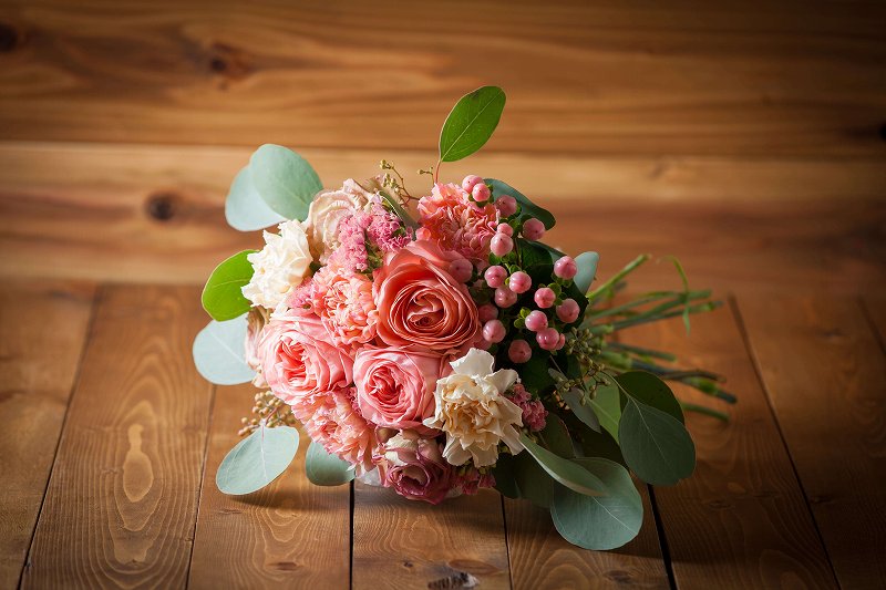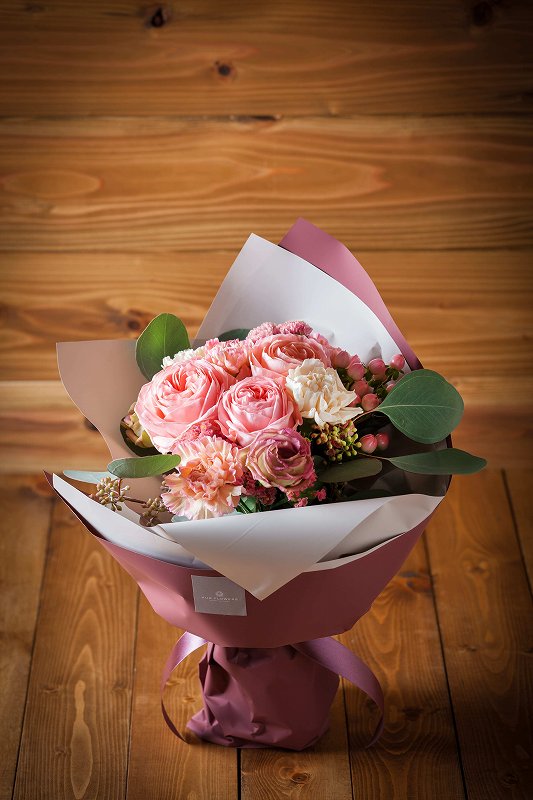 心や体に満ち足りた気分をもたらしてくれる女性的な花束。