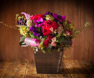 蓋が付いたボックスアレンジメントや、ブーケ(花束)については、札を立てることが出来かねますので、札をご希望いただいてもメッセージカードとしてのご利用となります。予めご了承ください。