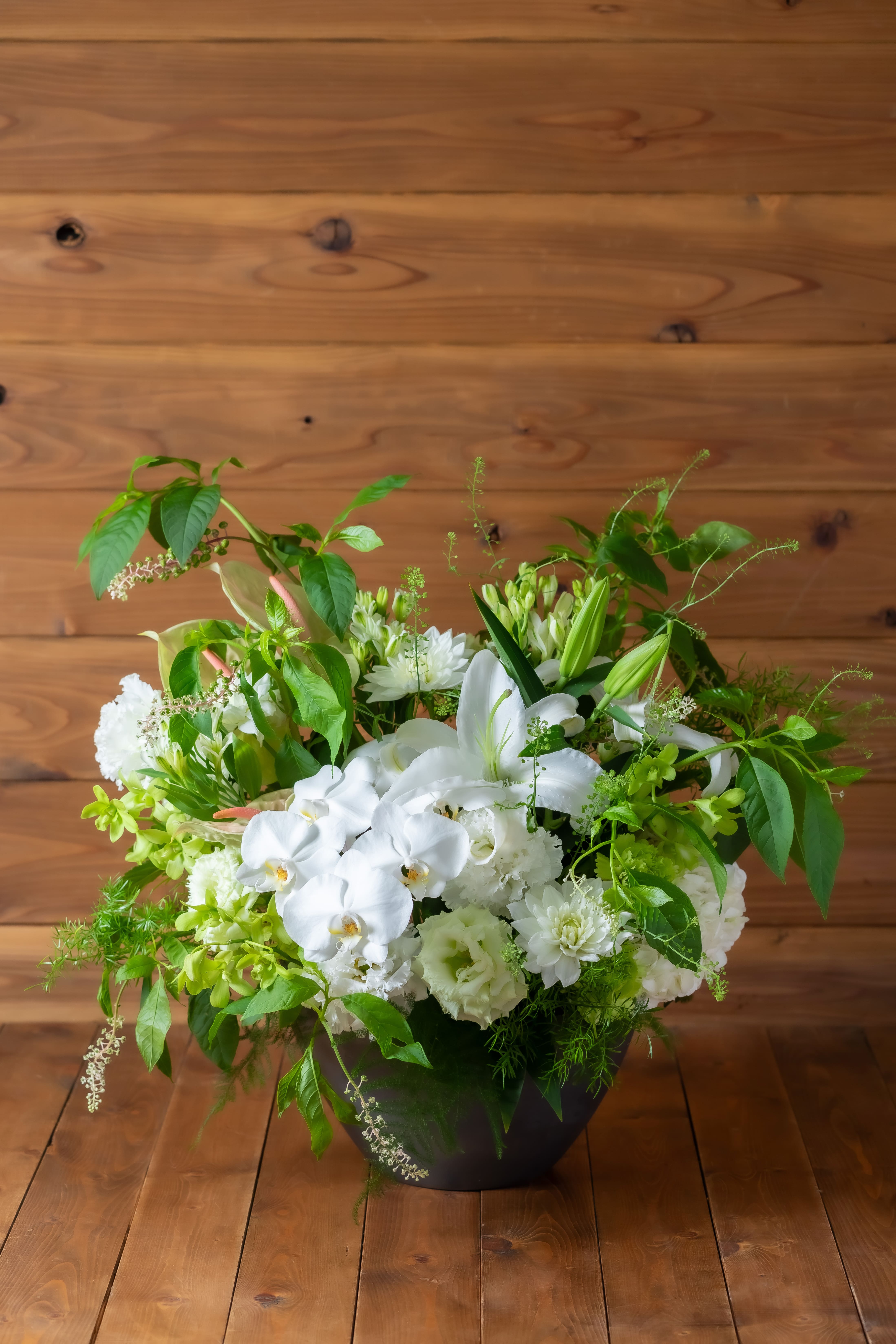 法人宛の御祝花や、お悔やみ花などに札をおつけすることもできます。