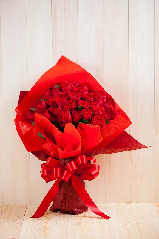 【プレゼントにぴったり】花束/60本のバラ 真っ赤なバラ60本のブーケ。還暦のお祝にもおすすめ。