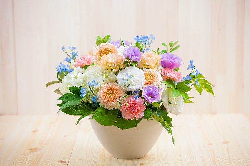 明るいお色味のお花はご家族様のお気持ちも和ませ、寄り添う気持ちをお届けします。