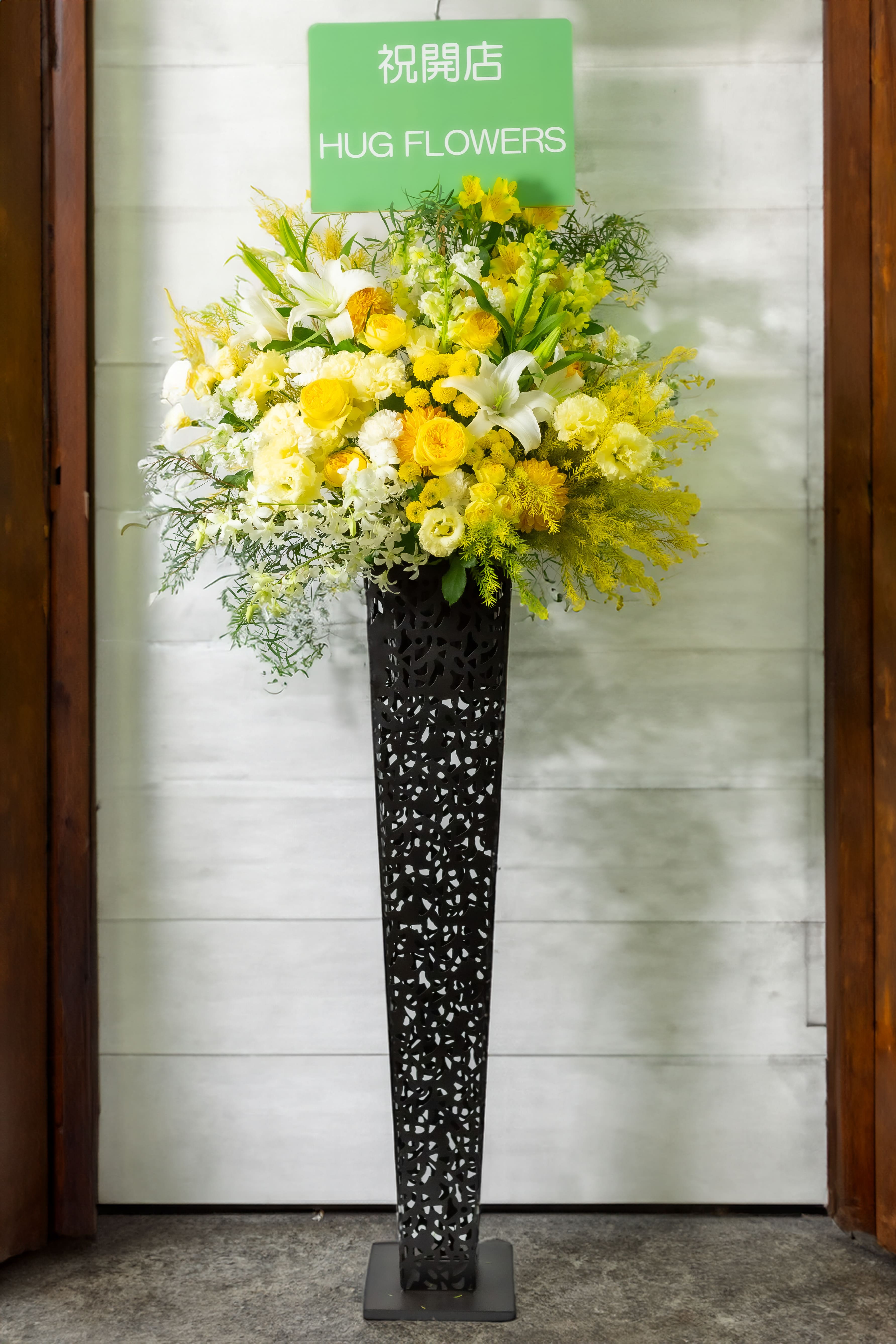 【札幌市内配送限定商品】スタンド花Yellow(柄抜きアイアンデザインスタンド角型)|HUG FLOWERS