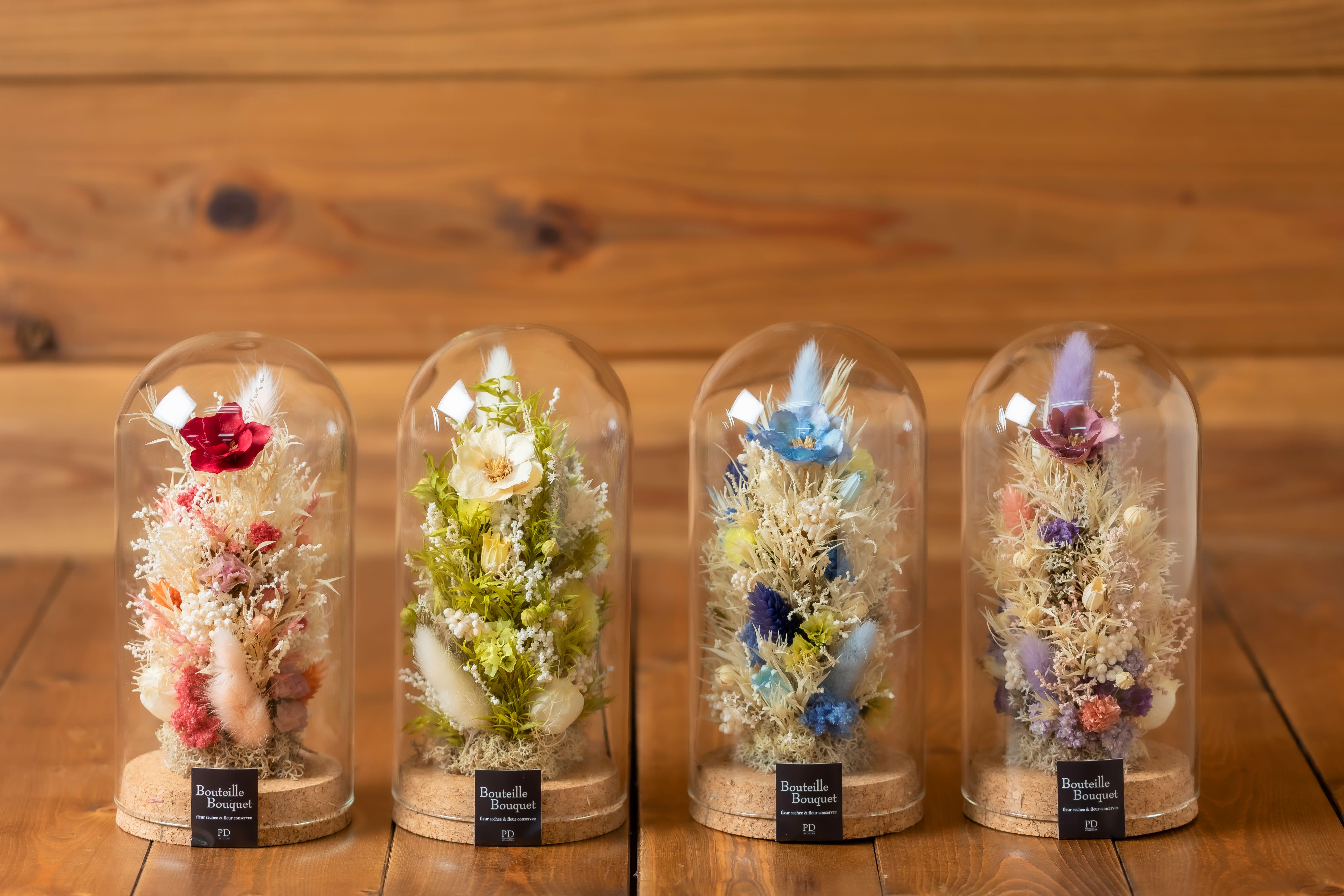 ガラス越しの光に透けて映るお花は繊細で美しく、ギフトにピッタリ。