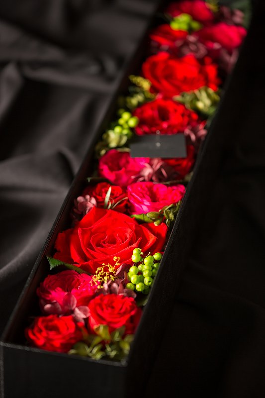 スタイリッシュなロングボックス。インテリアフラワーとしても美しい存在感を放ちます。縦でも横にしても飾ることができます。