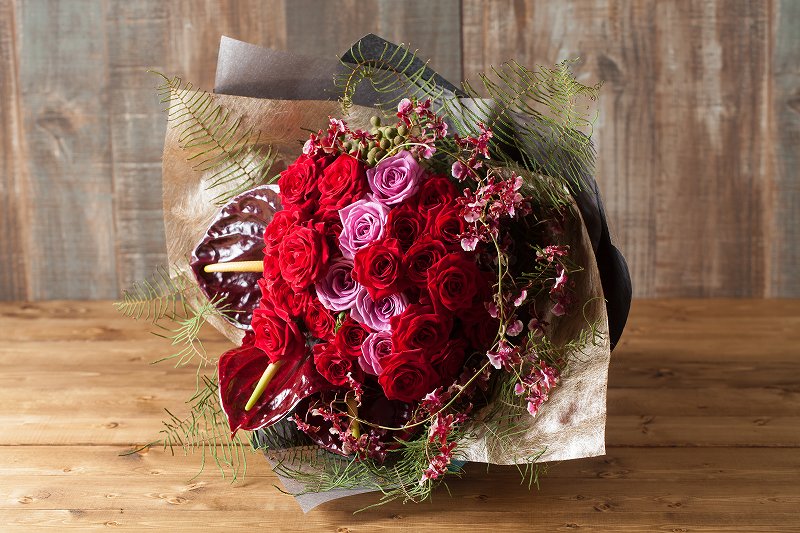 【プレゼントにぴったり】花束/バラのロングブーケ(レッド&ピンク)A