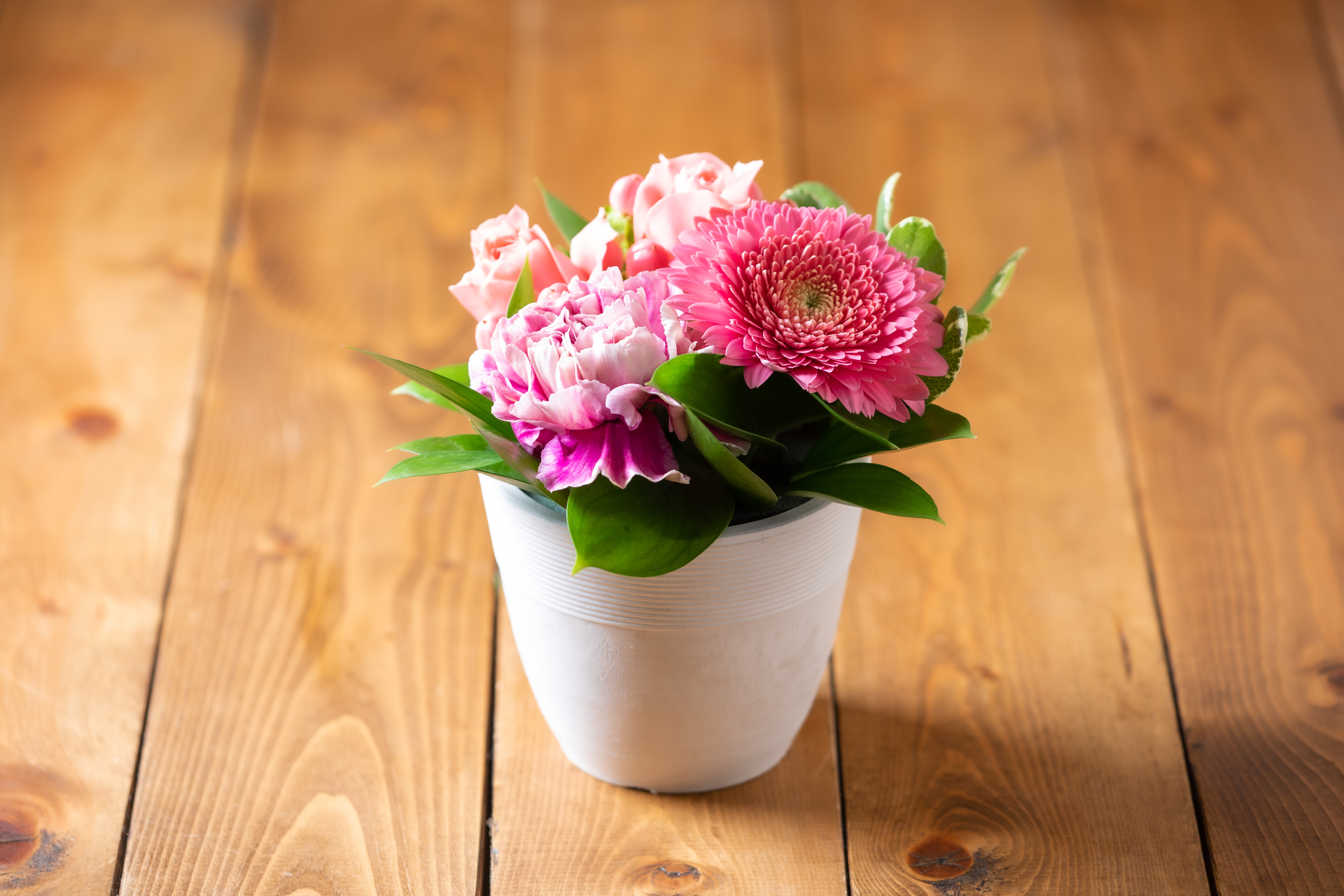 可愛らしいアレンジメントから華やかなアレンジメント、種類豊富にご用意しております。ご自宅用やギフトにも。HUG FLOWERSでは一点一点フローリストが丁寧にお作りし、お客様の元へ届けます。