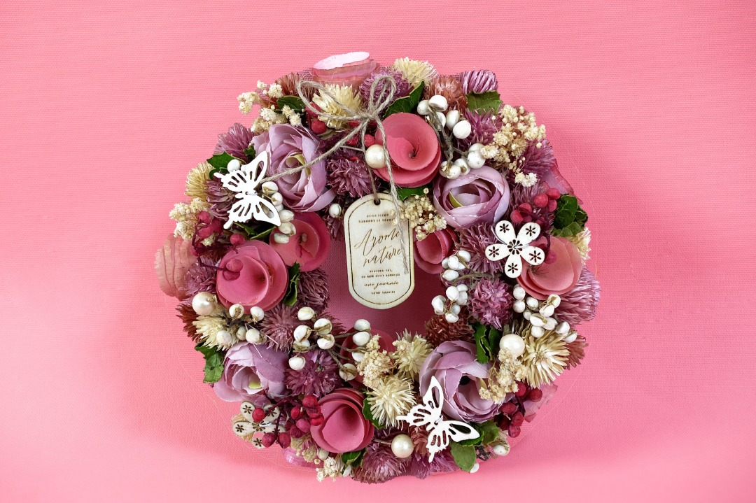 【プレゼント・お祝いにぴったり】ナチュラルリース/ダスティピンク
