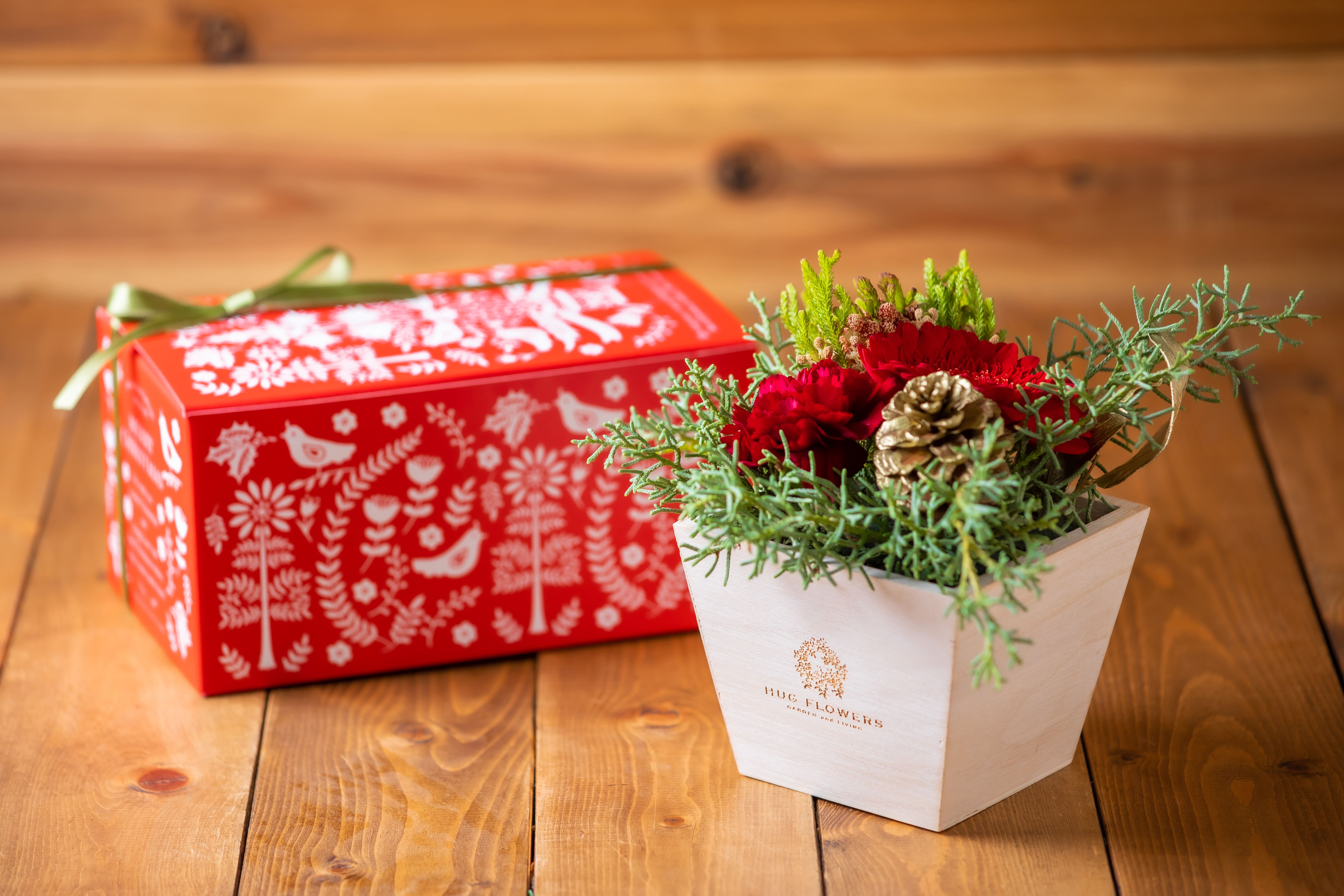 ビーガン・アレルギーの方でも安心して召し上がれます。アレンジメントフラワーとセットでクリスマスを愉しもう。