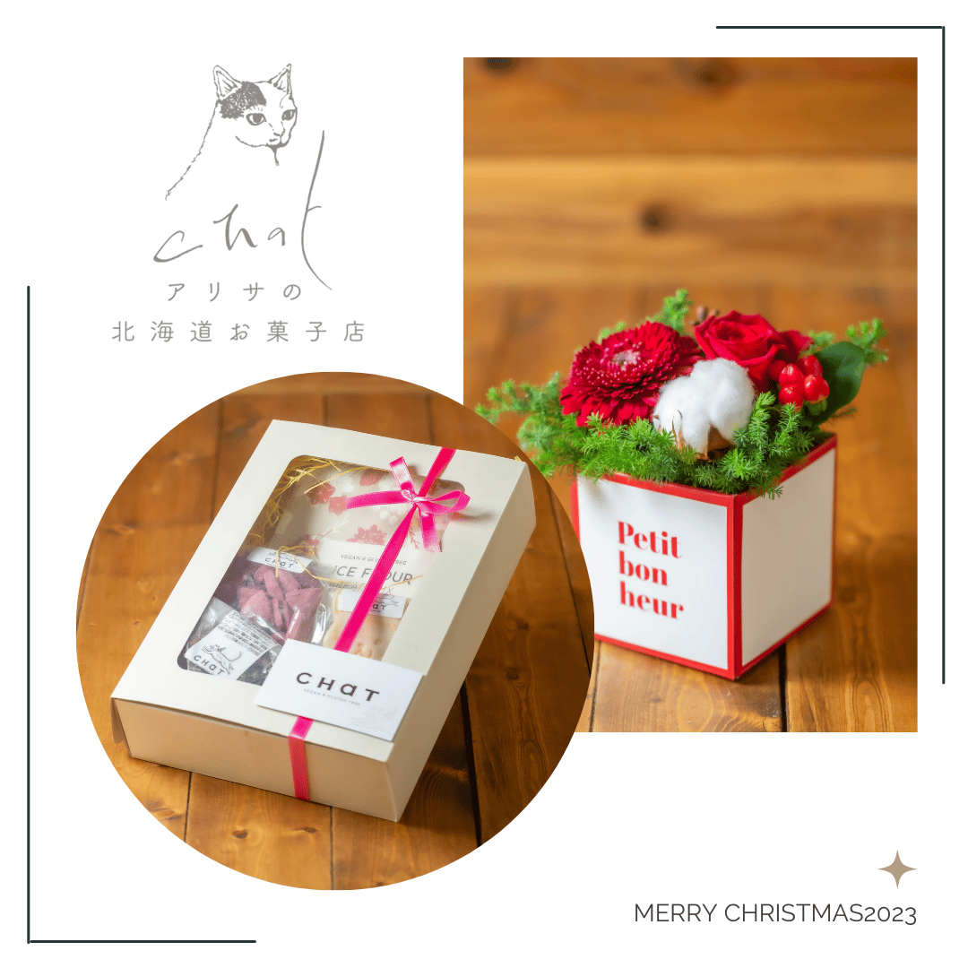 「CHaT VEGAN & GLUTEN FREEヴィーガン・グルテンフリースイーツ」クリスマスアレンジメントとお菓子のセットコラボ商品をご用意いたしました。