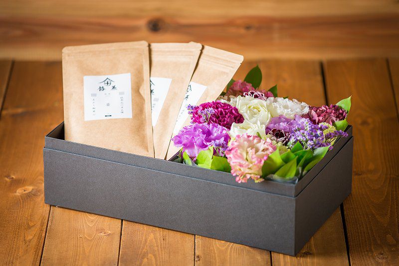おうち時間にぴったりなアレンジメントフラワーと深みと品のあるお茶で素敵な空間をプレゼントしましょう。