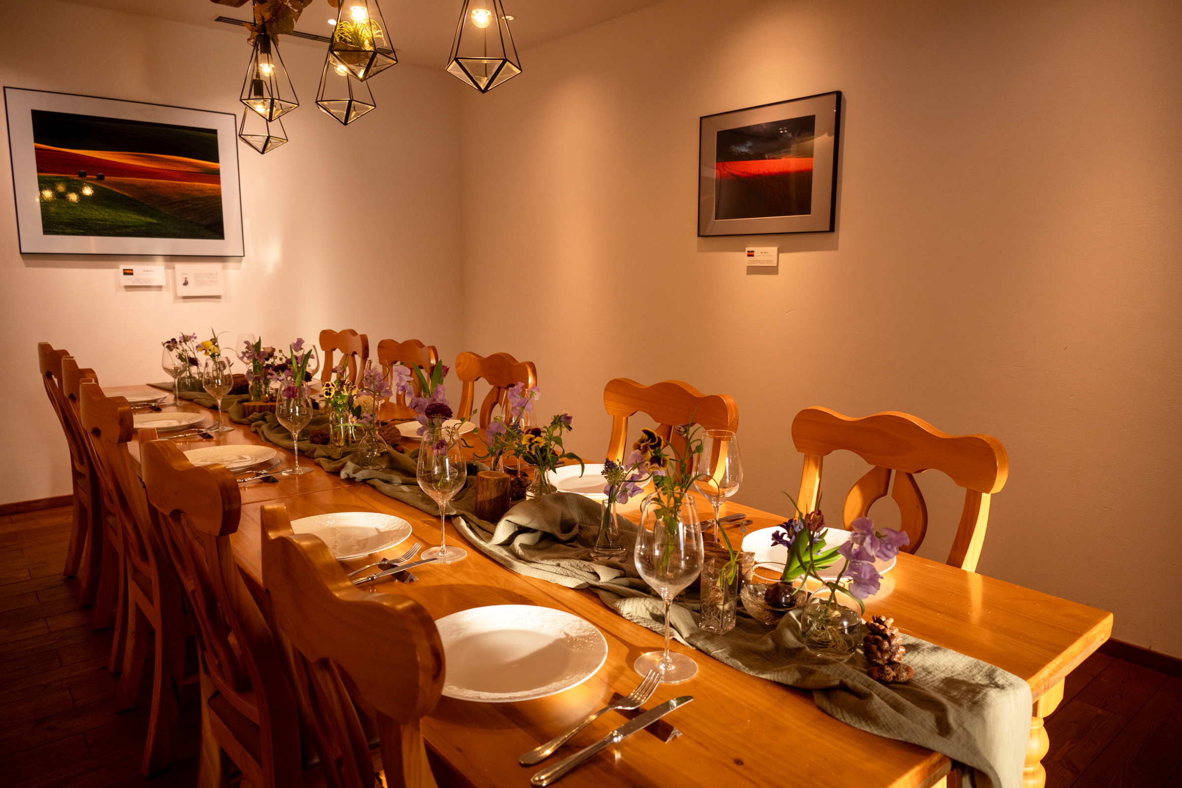 フェルム ラ・テール美瑛では、大切な人とゆったり過ごせる個室や、大きな窓から景色を一望できるレストラン席をご用意しております。