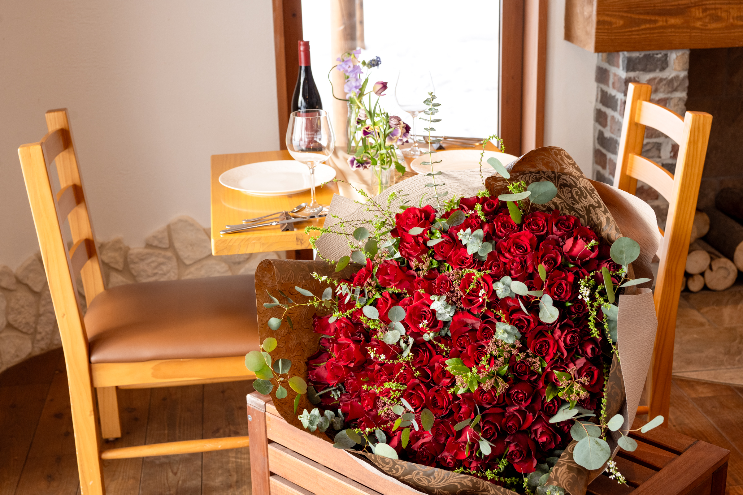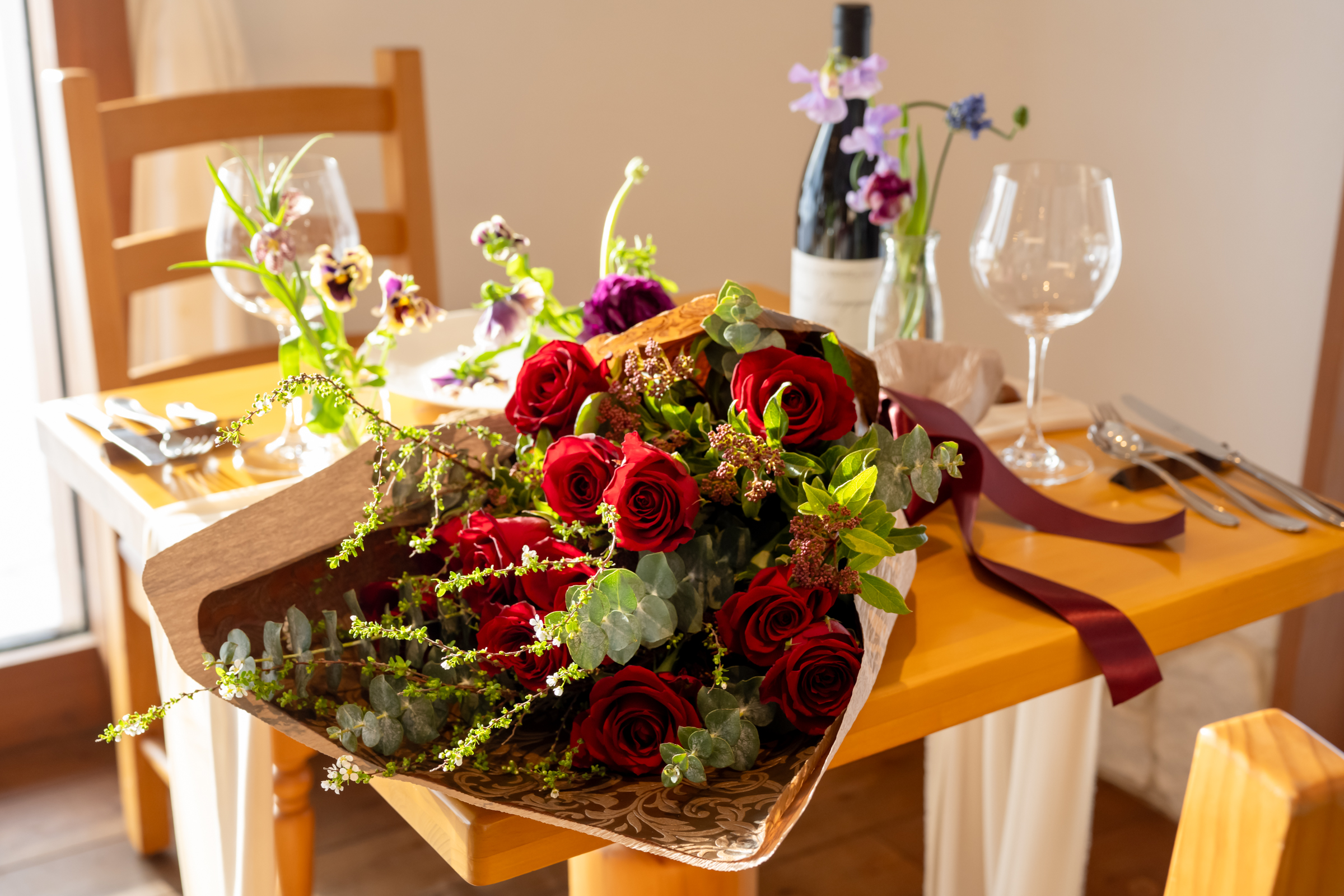 - 特別な花束プラン:12本のバラ(ダーズンローズ)や、108本のバラのプロポーズブーケ