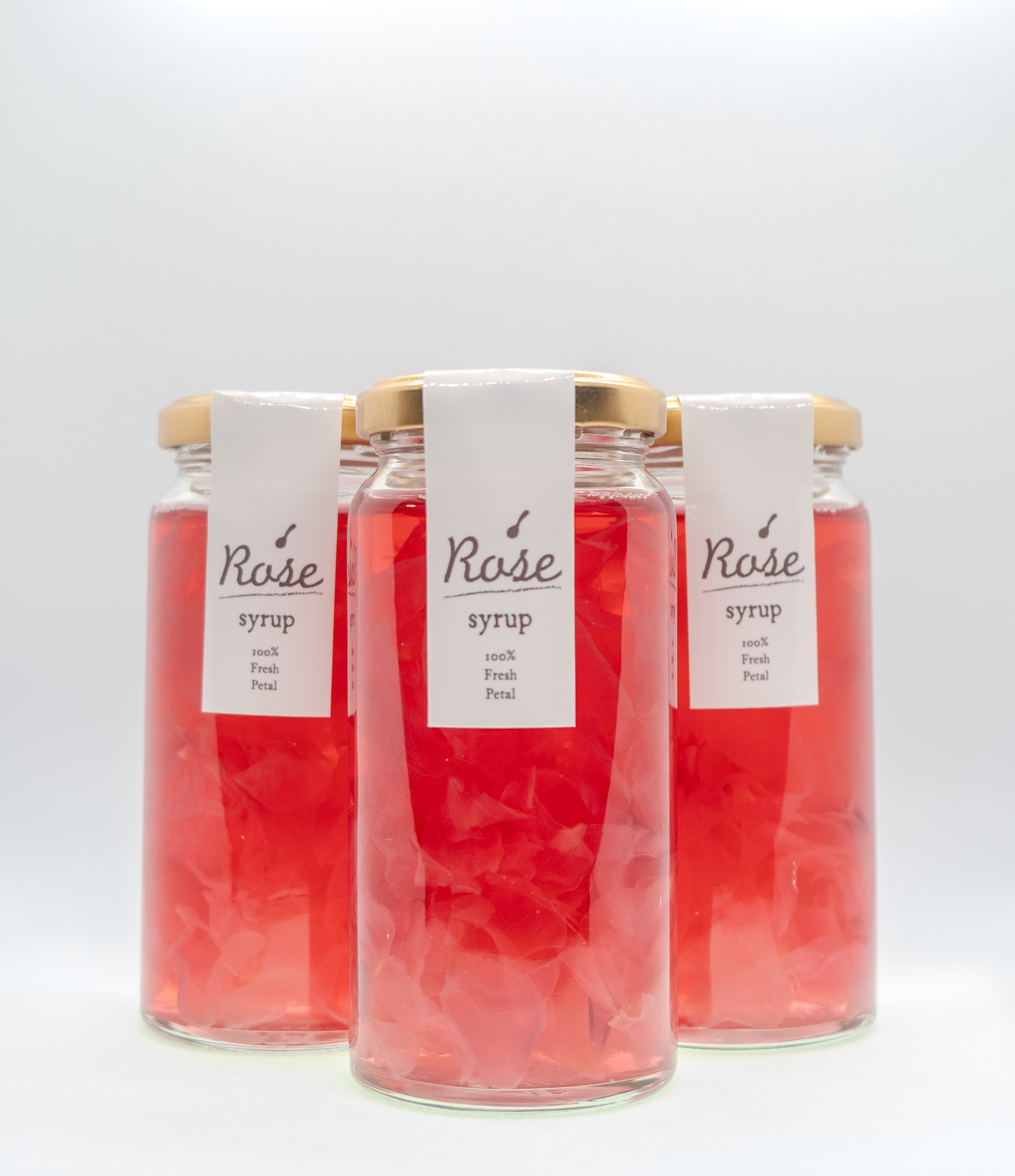 長野県中野市産フレッシュローズ100%使用長野県中野市にある荒井バラ園が自社農園で摘んだバラを使い、市内にある「たかやしろワイナリー」でその日のうちにシロップに。 小さなお子様にも食べていただけるよう、国産のきび糖とレモン汁を使い、すっきりした甘さに仕上がっています。 バラ本来の香り、華やかなピンク色が食卓はもちろん、食べる方の心を彩ります。