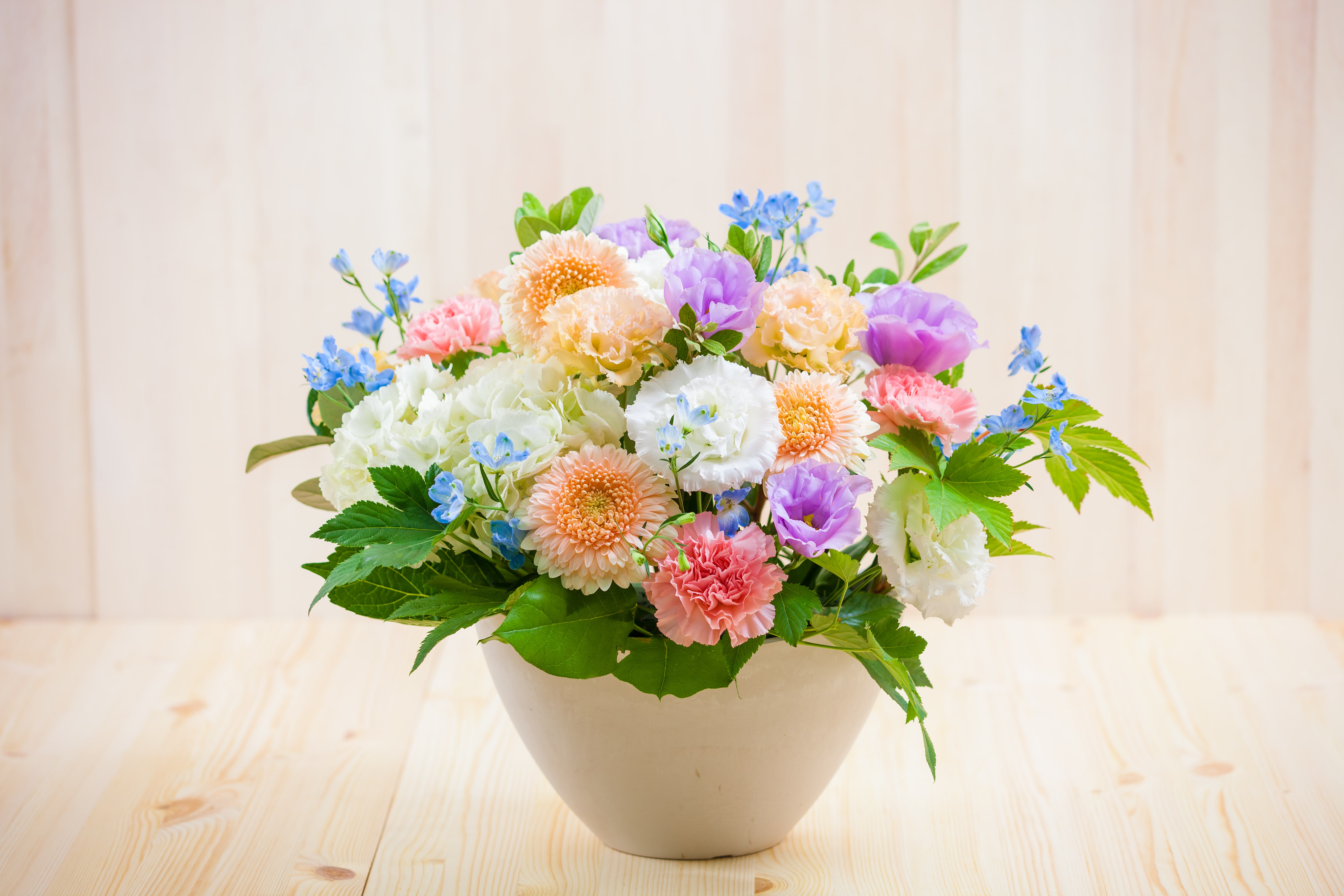 落ち着いた色のアレンジメントから、明るいお花が揃ったプリザーブドフラワーなど幅広くご用意しております。HUG FLOWERSではご用途に沿ったお花を届けます。