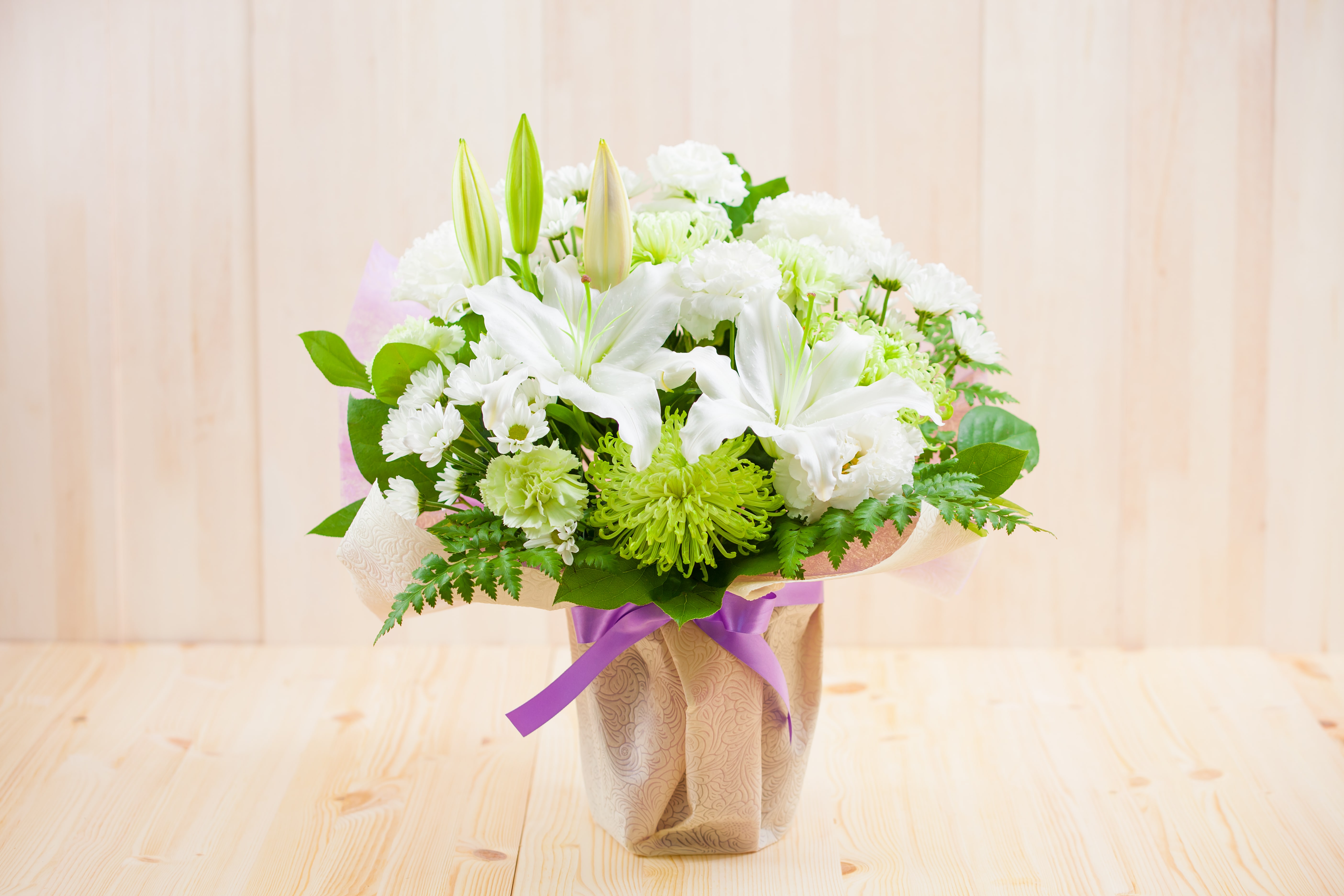 - 色: 一般的には白や淡い色が好まれます。派手な色や強い香りの花は避けるのがマナーです。