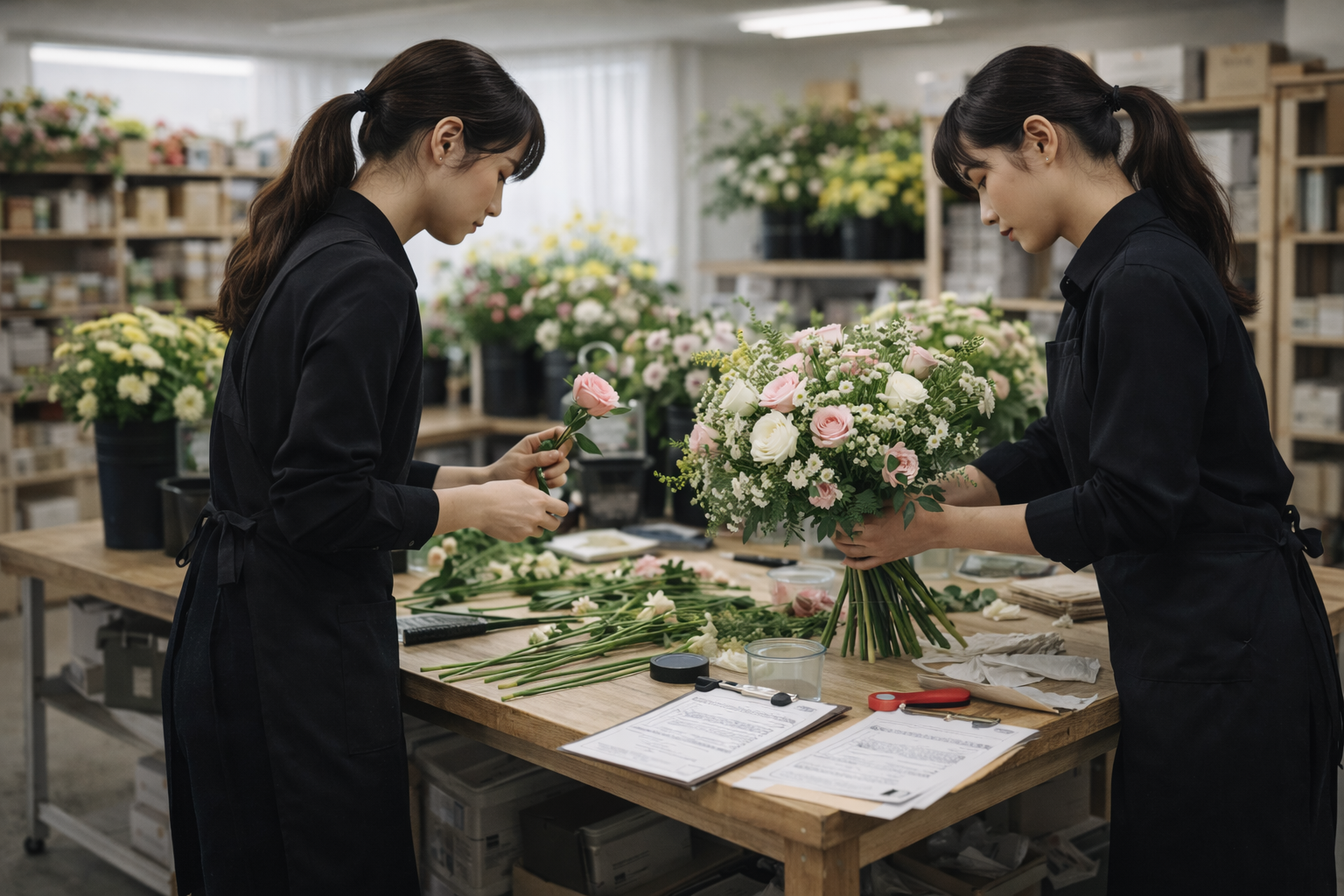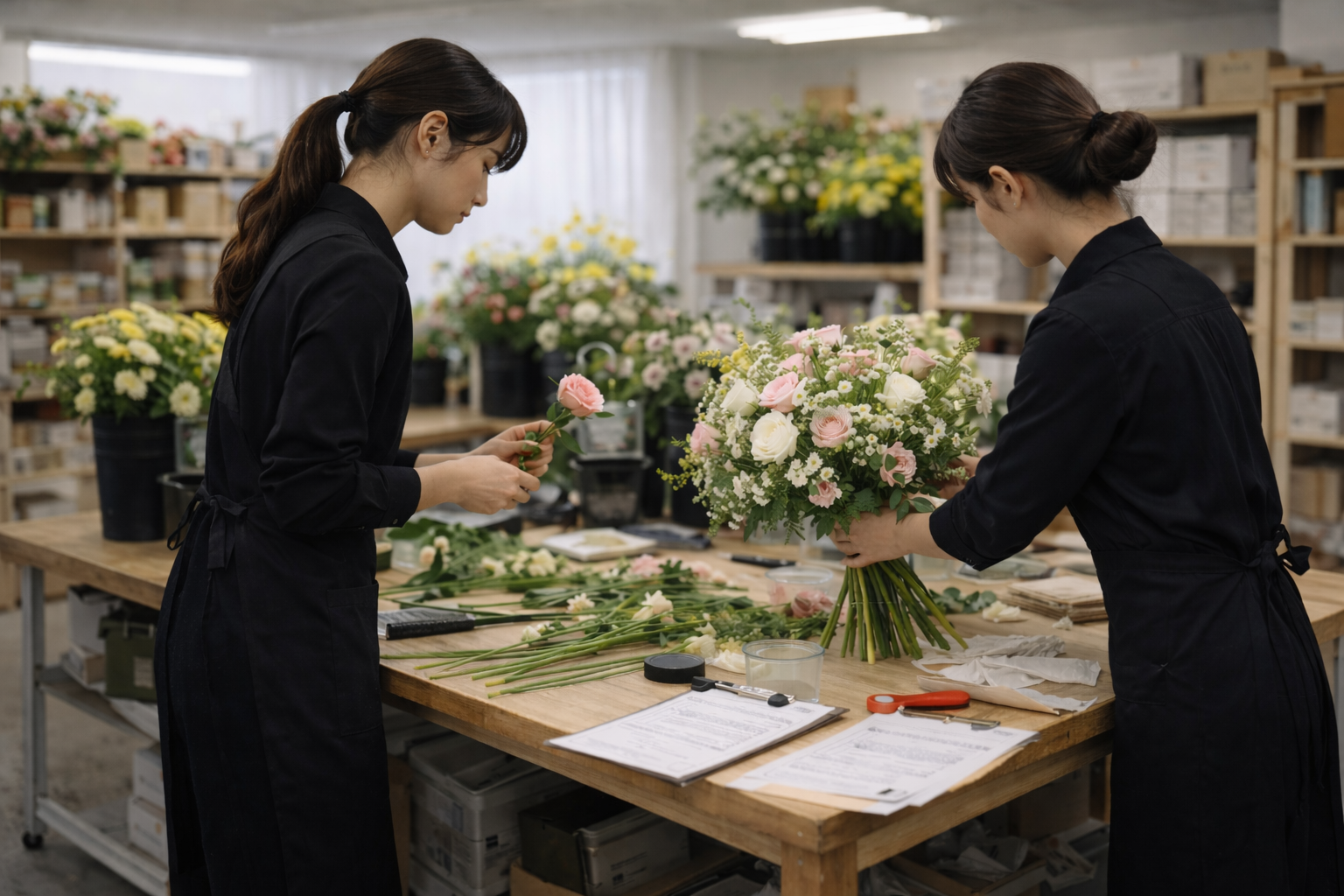 花屋の仕事を長く続けていくうえで大切なのは、制作技術だけではありません。 仕入れ、在庫管理、顧客対応、納品までを理解している人材は、現場で強く、 事業の中でも欠かせない存在になります。