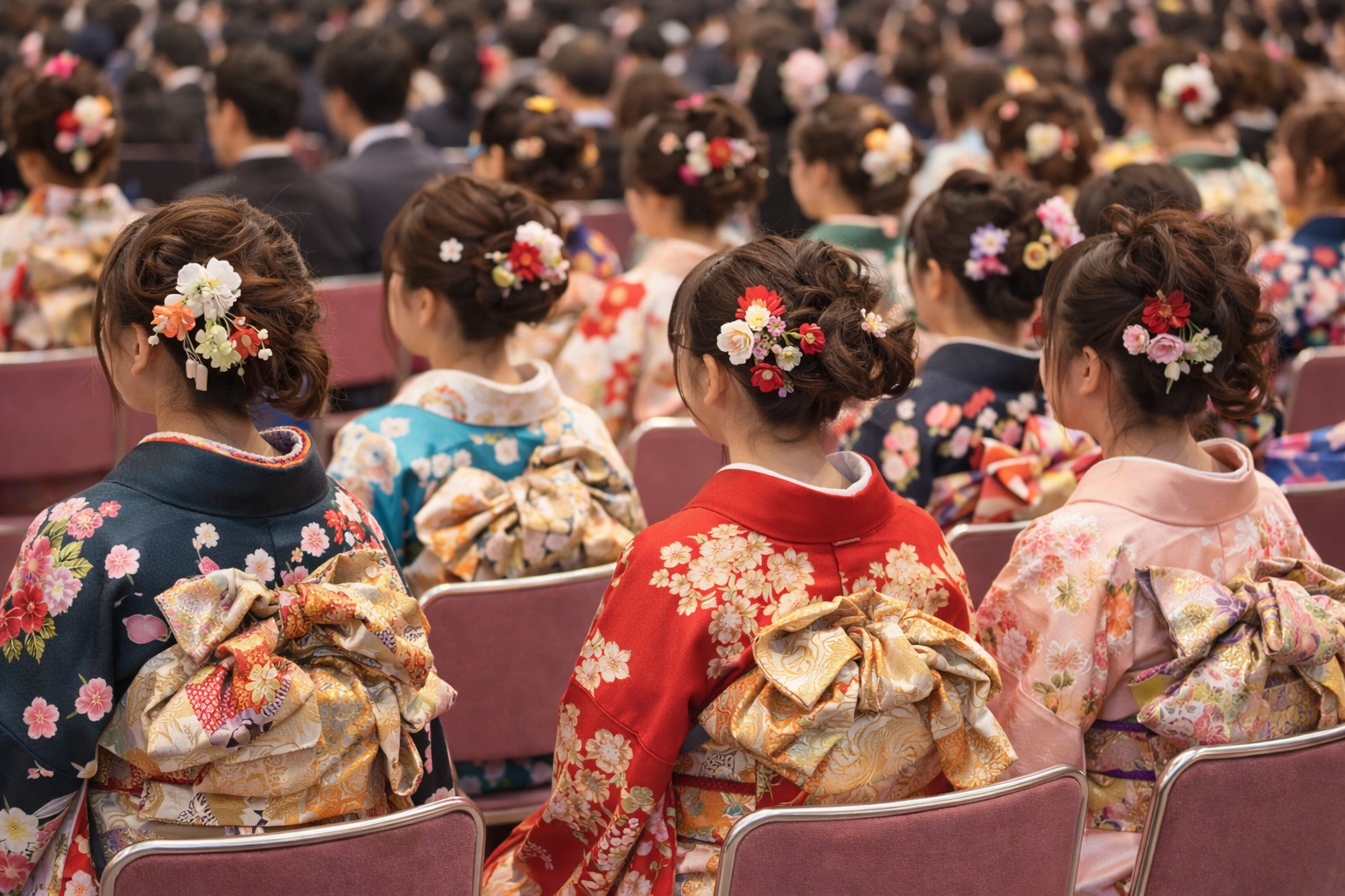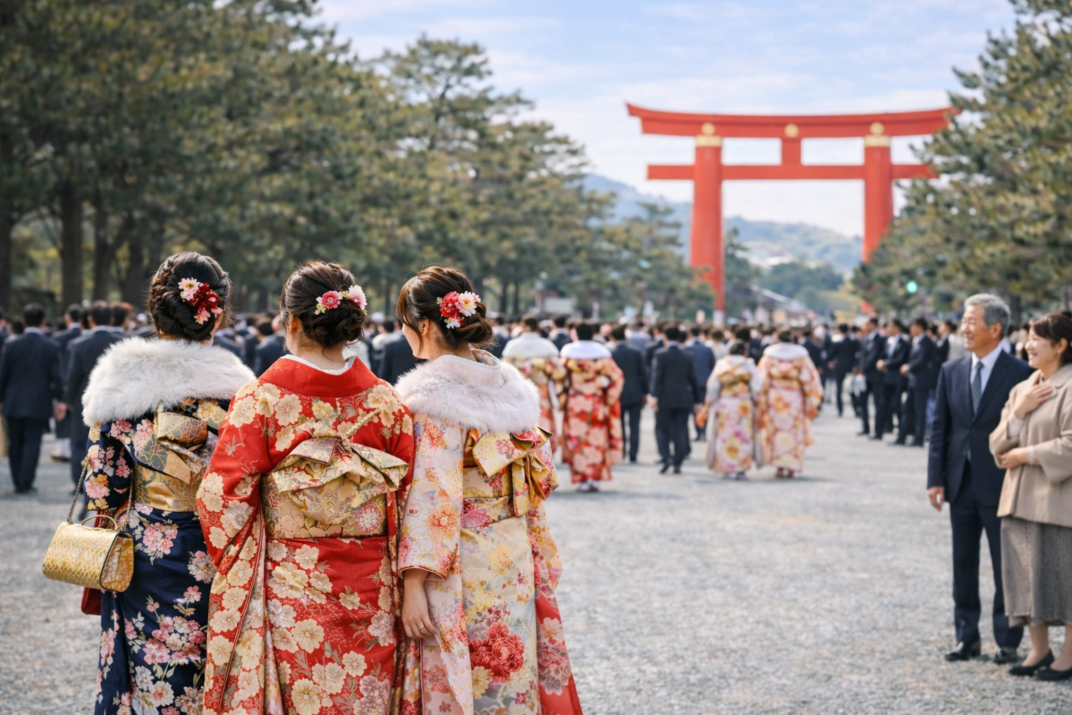 この行事の起源は古く、奈良時代の元服(げんぷく)にまでさかのぼります。 現代では自治体ごとに成人式(20歳の集い)が開催され、 振袖やスーツに身を包んだ若者たちが、新たな人生のスタートを迎えます。