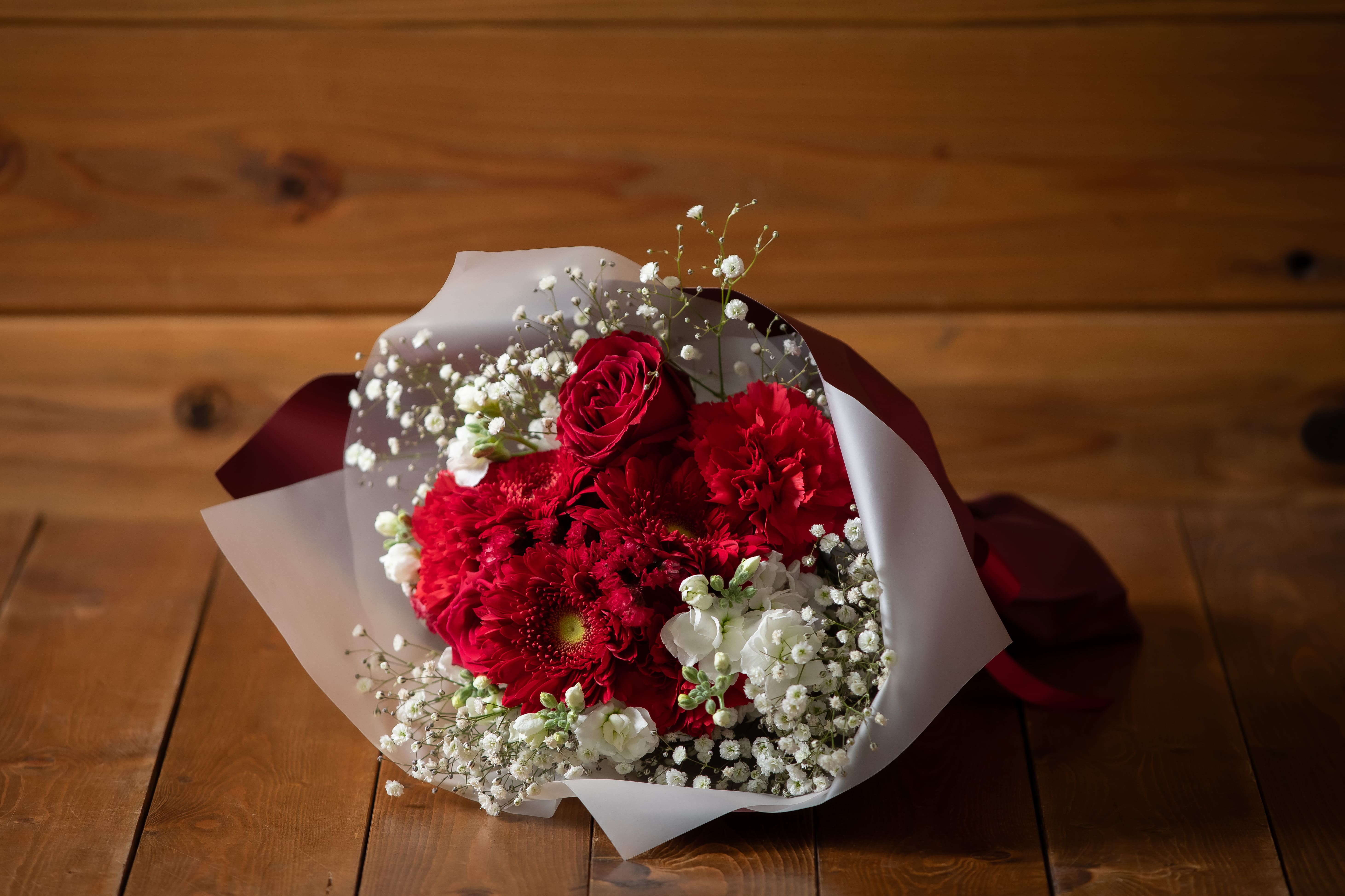 「赤い花束 プレゼント」「情熱 花束」「プロポーズ 花 赤」などの検索にも対応。 強い印象を残したいシーンに最適です。