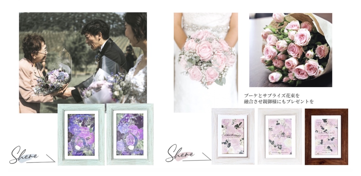 誓いを共に過ごしたお花と一体化しお手元に残すことができます。
